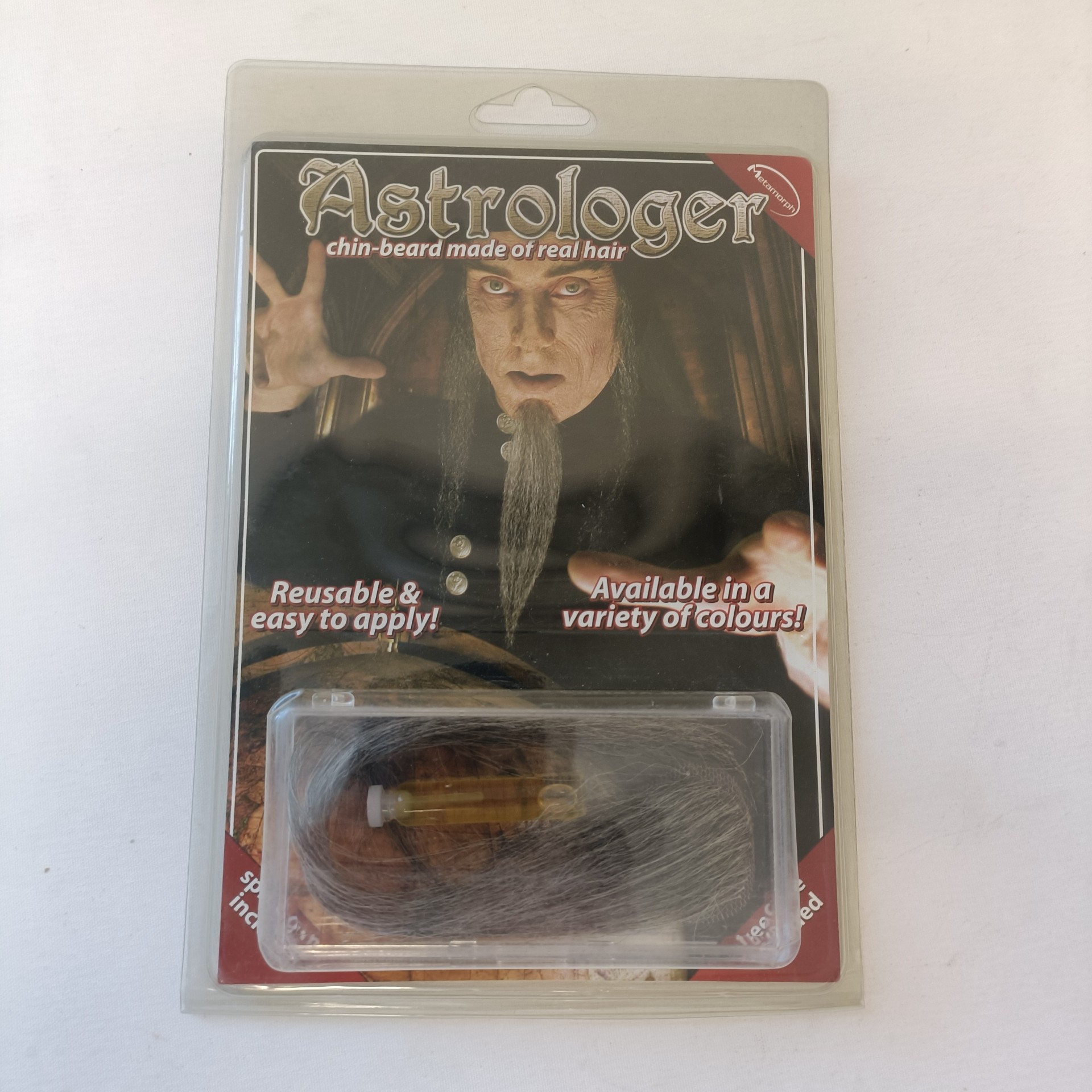 Pakkaus sisältää tummanharmaan leukaparran sekä kiinnitysliiman.