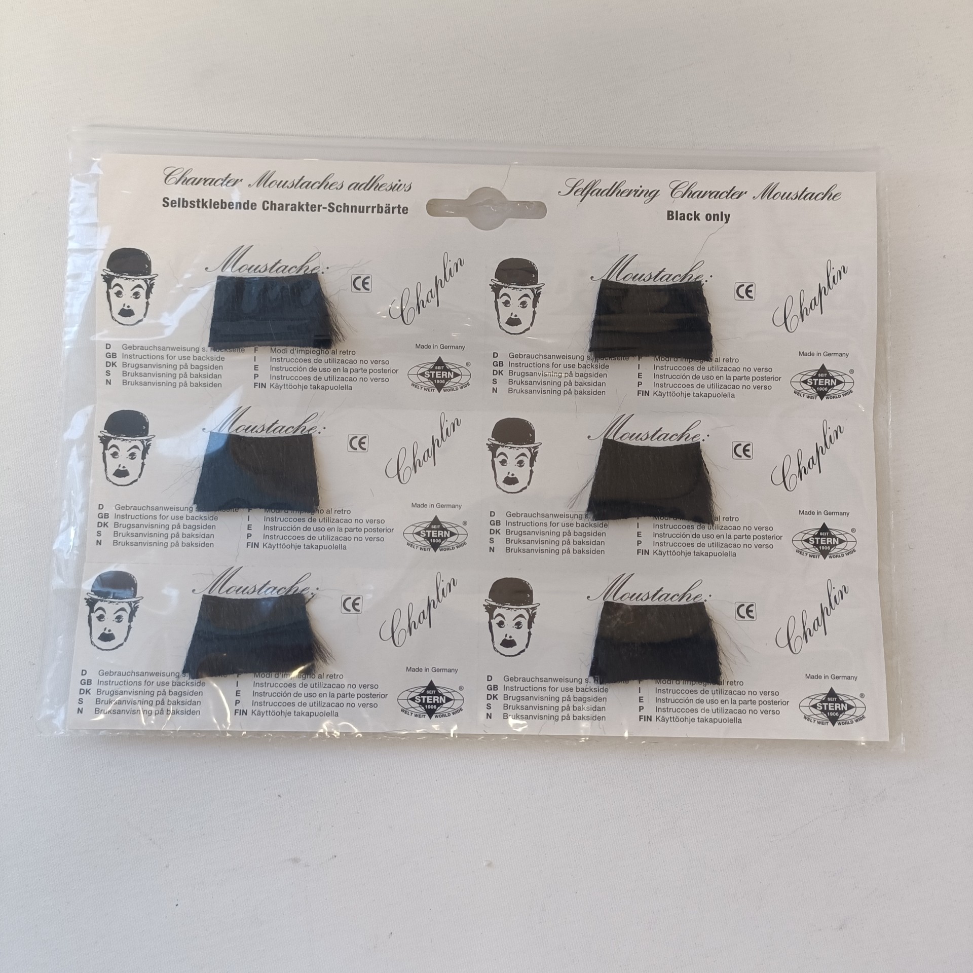 Mustia Chaplin viiksiä huipputarjous! 6 kpl arkki.