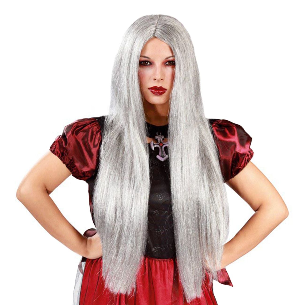 Harmaa peruukki sisältää pitkän, hopeanharmaan peruukin, joka sopii täydellisesti esimerkiksi noidaksi tai velhoksi pukeutumiseen. Viimeistele asu peruukkiverkolla, jotta istuvuus on paras mahdollinen.