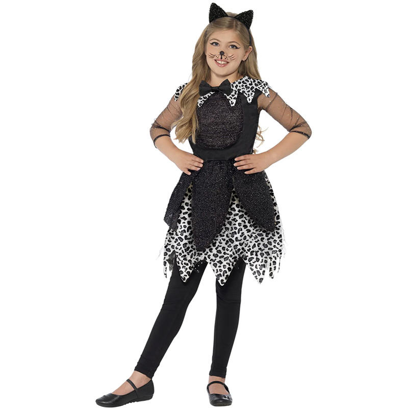 Sisältää kauniisti kimaltelevan mekon, hännän, sekä pääpannan kissan korvilla.