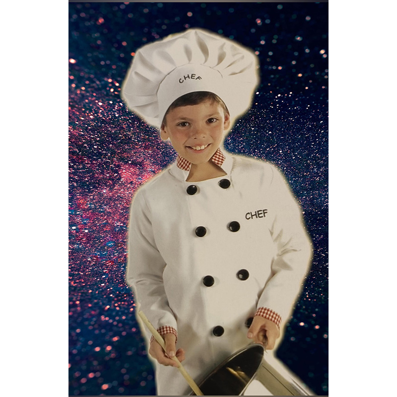 Lasten kokkiasu. Sisältää takin, housut ja hatun.