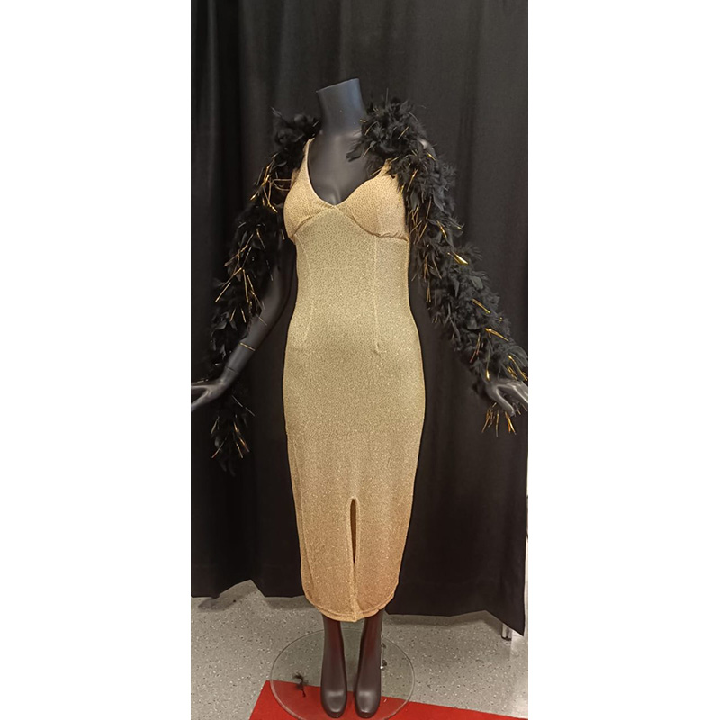Club Burlesque kimaltava iltamekko. Joustava, kevyt materiaali. Edessä halkio, takana vetoketju. Kevyesti topattu yläosa, olkaimissa säätömahdollisuus.