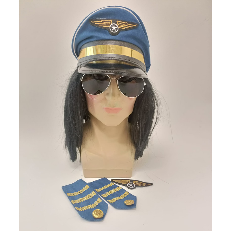 Setti sisältää hatun, aurinkolasit sekä olka/rintamerkit (sis. hakaneulakiinnityksen).