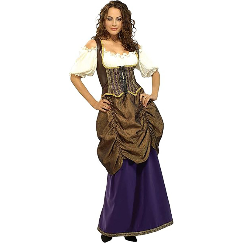 Sisältää puseron, korsetin sekä hameen esiliinalla.