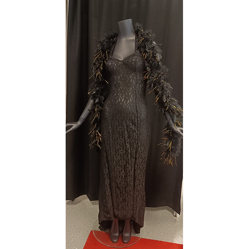 Club Burlesque kauniisti laskeutuva musta pitsimekko, takaa hieman pidempi malli. Koko M.