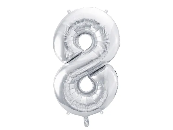 Metallinen folioilmapallo numero 8, väri hopea.