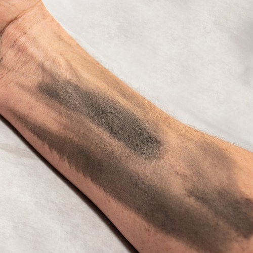 Värillä 101 (musta) voidaan luoda hiiltynyt efekti. Tätä väriä voidaan käyttää myös tuhka-/nokijälkien tekemiseen. Levitä jauhetta iholle kuivana tai hieman kostealla sienellä tai siveltimellä.