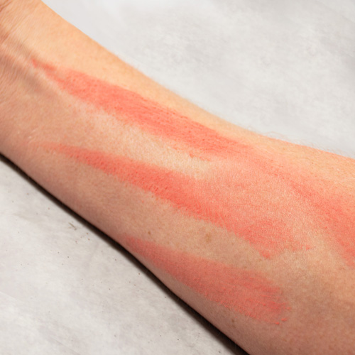 Väri 505 (punainen) näyttää kuivana hieman vaaleanpunaiselta, mutta muuttuu kirkkaanpunaiseksi kostutettuna. Tätä väriä voidaan käyttää hyvin esimerkiksi (tuoreiden) palovammojen luomiseen.