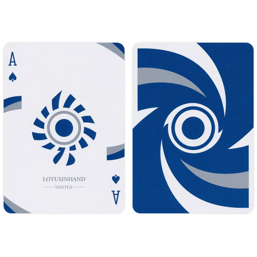 Ventus-pelikorttien takareuna on suunniteltu viivoilla, jotka tekevät korteista entistäkin näyttävämpiä. Tapa, jolla reunat on yhdistetty kuvion takareunassa, luo illuusion siitä, että kauneimpia liikkeitä voi ihailla. Ventus-pelikorttien puolikehyksinen takareuna ja värilliset raidat etureunassa on myös suunniteltu siisteillä yksityiskohdilla ja useilla kauniilla viuhkoilla ja kuvioilla. Kaikki on pakattu eleganttiin laatikkoon, jossa on mattapinta, kohokuviointi ja hopeafolio. Ventus-kortti on painettu Taiwanissa uutena versiona ohuesta luksuskartongista.